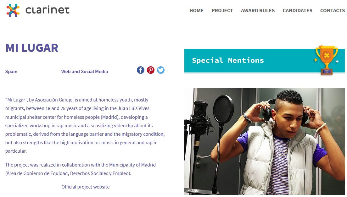 EL PROYECTO “MI LUGAR” ES PREMIADO POR LA INICIATIVA EUROPEA CLARINET