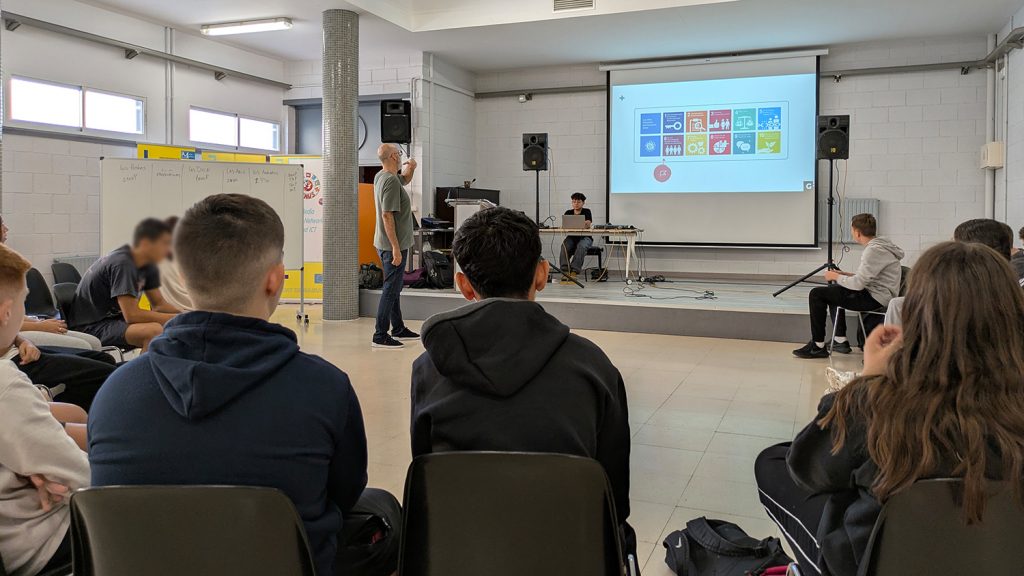 Esta iniciativa, impulsado por la Coordinadora Estatal de Comercio Justo (CECJ) y financiada por la Agencia Española de Cooperación Internacional para el Desarrollo (AECID), ya nos había llevado antes a Zaragoza y a El Boalo. En esta ocasión, el destino sería Puerto de Sagunto. Allí, nos esperaba un grupo de chicos y chicas de 12 a 13 años del IES María Moliner para realizar un taller sobre comercio justo y música urbana.